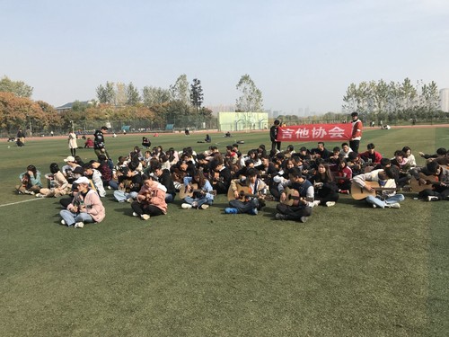 悠扬的旋律依旧在耳边萦绕,在音乐的世界里,在吉他的世界里,更多的交流会迸发出更多的激情火花。这次《平凡之路》弹唱的快闪活动在不断的互动与交流中更进一步,从一开始拍摄的不在状态到后来的热情高涨,激昂的乐声随着吉他手美妙绝伦的梦幻指画充盈了足球场,让在场的每一个人都随声合唱,尽管有部分基础比较弱的会员跟不上节奏但也很努力的去弹奏,让这个表演更加的完美。这次快闪活动主要是通过一种新颖新潮的方式,让更多热爱音乐的人也能加入到我们的团体中来,让还不了解音乐及乐器的人对吉他有一种新的认识,把我们吉协这个大家庭分享给更多的小伙伴去了解。