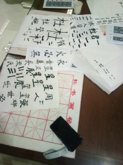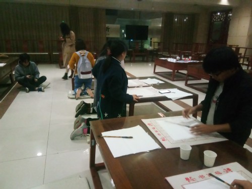 中国书法历史悠久,浏览历代书法,晋人尚韵,唐人尚法,宋人尚意,元、明尚态。可见每个人对于书法也有着自己的独特见解,于是王部长在教会我们拿笔的姿势之后,让社员们挑选自己喜欢的字进行书写,国学馆之内,你能看见一个个神情专注的同学在描绘着他们所理解的书法。