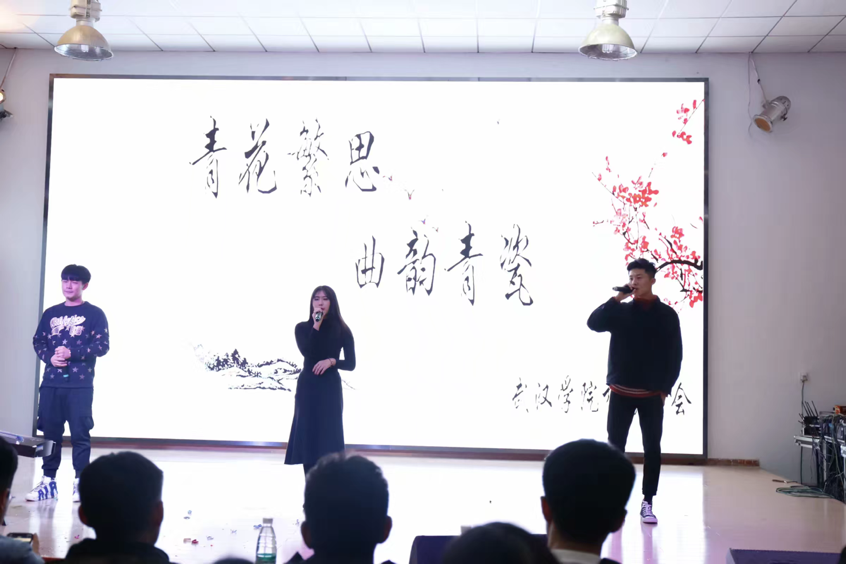 紧随其后的舞蹈串烧,异彩纷呈,魅力四射。紧接着的各种节目轮番登场。由电子商务学院和继续教育学院带来的拉丁舞表演《一个人一座城》将晚会带入第一个高潮。两人主唱,四人跳拉丁舞,歌声与舞蹈融为一体,是视觉与听觉上的一场烟火盛宴。掌声欢呼越来越热烈,管理学院便给我们带来了演绎相声《戏说礼仪》等精彩的节目。随着热情的高呼,武汉学院带来的《青花繁思,曲韵青瓷》带动了全场的气氛,青花迭香,朵朵皆绚丽。