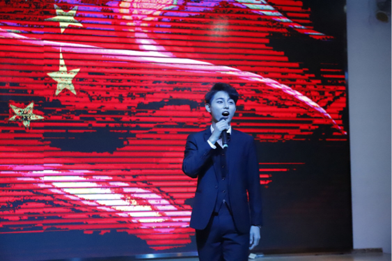 国旗飘扬,以五星红旗为背景,继续教育学院演唱的节目《中国大舞台》震撼人心,彰显了东方的中华的魅力。