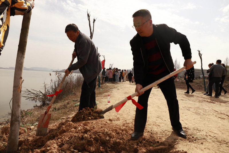 正值植树节,我校领导、同学参与植树活动积极主动。活动中,我校领导挽起袖子,拿起锄头、铁锹为一颗颗树苗安置“新家”。