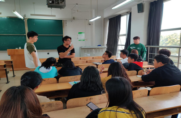 台下部员全神贯注、认真聆听。各个部长发言过后,会长要求每个部门开一个内部会议,在会议中大家都很积极地参加讨论。