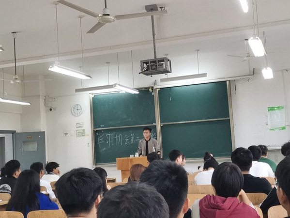 例会开始前,监察部进行了考勤的检查,19点10分例会正式开始。首先由会长刘加隆讲解“乒羽”协会近期以来存在的问题,以及针对这些问题提出了自己的看法和建议。其次,会长还谈了自己对于“乒羽”协会未来的整体规划,并谈到将会努力把“乒羽”协会管理的更好。紧接着,会长让各个部门的部长与副部长上台轮流发言,谈谈自己部门的问题以及对部门的看法和建议。