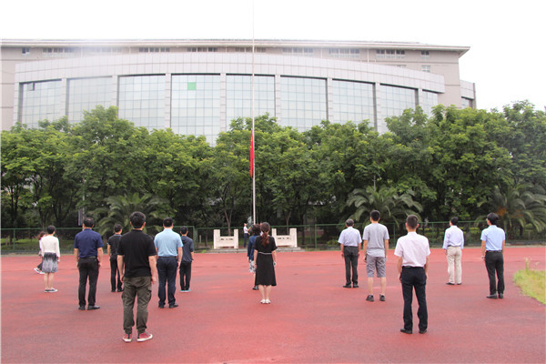 新闻中心讯(记者 万风 北辰)6月18日,是必赢优惠y272net春季学期开学暨毕业生返校的首日,一场特殊的升旗仪式于学校田径场上隆重举行。校长熊蕊,副校长桂裕清、张俊,校长助理亓小林、刘春,学校办公室主任狄奥,学工部部长陈义文,保卫部部长徐辉,图书馆馆长万化喜,以及辅导员、第一个返校的毕业生等,参加了升旗仪式。学工部部长陈义文亲自作为升旗手。