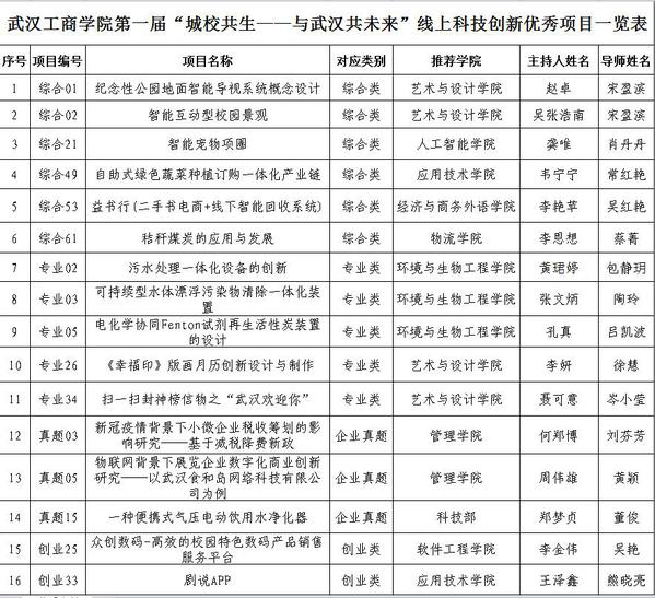 校团委宣传部讯7月27日,必赢优惠y272net第一届“城校共生——与武汉共未来”线上科技创新活动优秀项目展演和评选大会召开,20个科技创新项目团队负责人向大会点评团和评审团汇报项目成果,16个创新项目最终获评优秀。
