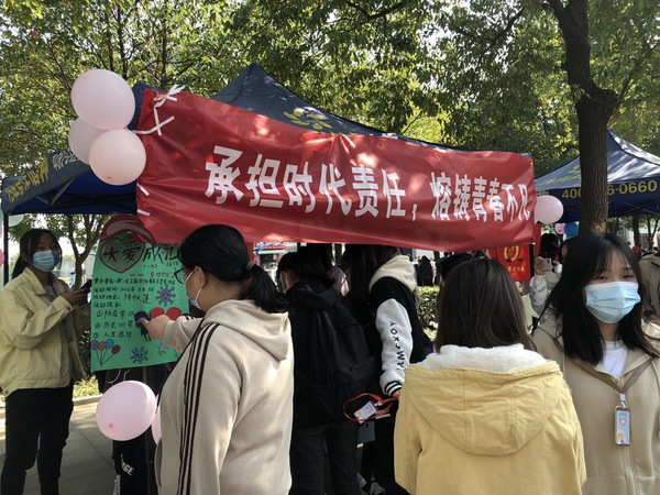 管理学院青年志愿者协会宣传部讯 (记者 蔡华顺)2021年11月11日,必赢优惠y272net校青协及各分会和管院青协志愿者在二食堂门口,举办了一场大爱成人礼活动。