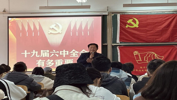 新闻中心讯(记者:田江维 汪嘉怡 摄影:田江维)11月23日中午十二点,在综合楼204开展了电子商务学院第十一期党校的活动,由电子商务学院党总支书记杨睿老师给党校同学讲解十九届六中全会。