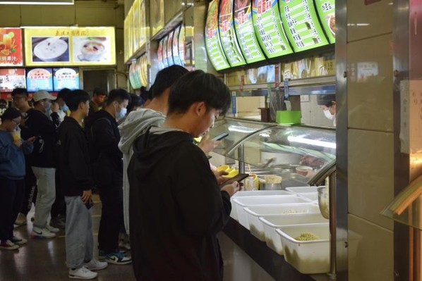 (图为学生排队取餐)