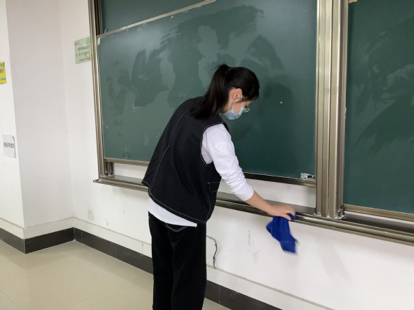 早上七点前,各专业学生就已经在各自负责教室进行清洁工作。在打扫时,他们会用抹布将桌面、黑板、窗台擦拭干净,并使用清洁工具打扫教室地面、过道。在他们的共同努力下,一个干净整洁的教室很快呈现出来,这不仅给老师和学生营造了舒适的环境,还使得教室清洁工作更加顺利、有序的进行。