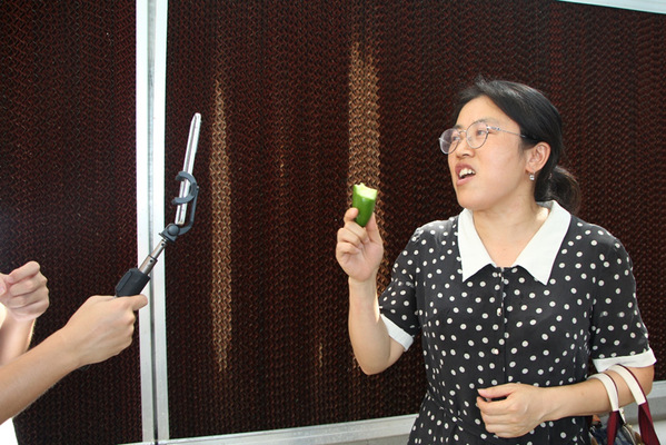 (图为志愿者正在直播水果黄瓜)