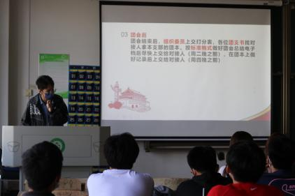 活动开始宣讲人韦香俊详细介绍环生学院团会的总体工作和分工,给2022级各团支书和青年团员提供了一个共同学习、共同进步的机会。结合团会事务责任承包安排和主题说明等方面,通过PPT的形式具体展示了培训内容和团会相关考核标准,保障团干培训的质量,从而建设一支高质量、高素质的团干部队伍。