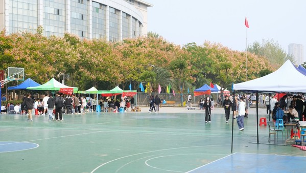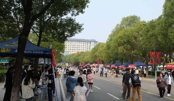早上七点半,各个社团的同学们摆好摊位,准备好奖品以及小游戏。随着人员慢慢多起来,摆点活动在八点整正式开始。大道上人来人往,同学们在自己感兴趣的摊位前停留游玩,气氛逐渐热闹起来,到处洋溢着欢声笑语。