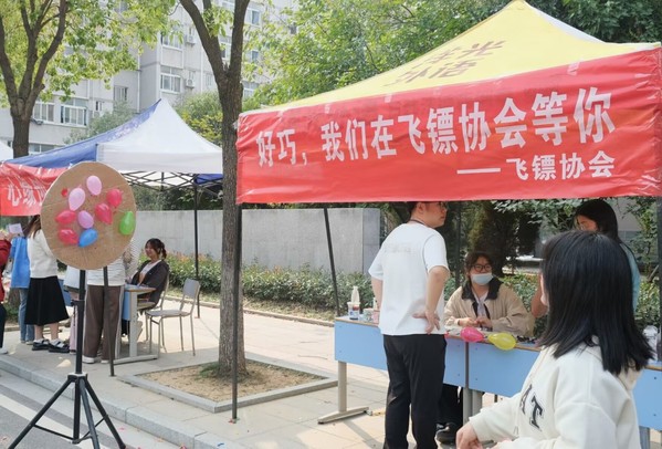 在活动进行中,各个社团的人员也在奋力招揽学生,发传单、面对面抢人、玩游戏等活动应接不暇,同学们刚在一个摊位玩完,又被另一个摊位所吸引,巨型人扮玩偶也凭借着可爱的扮相吸引了一批又一批的同学合影。扔飞镖、滑轮滑、扎气球、下围棋、玩推理、变魔术等各种社团游戏百花齐放。社团的同学闲暇之余还不忘向同学们介绍社团接下来活动,进行二招的社团更是邀请志同道合的同学加入其社团,一同进行以后的社团活动。
