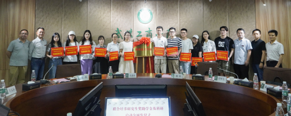 图为与会领导为学生发放奖助学金及科研启动金 摄影:邵烨炫