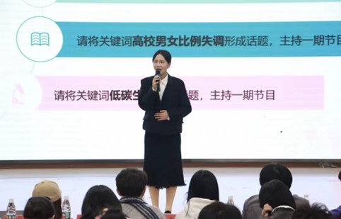 选手们有的幽默诙谐,有的自信大方,毫不吝啬地展示自己的拿手好戏,其中最令人印象深刻的环节莫过于模拟主持。选手们根据主办方提供的关键词进行现场创作,并在三分钟内,聚焦大学生就业、低碳生活、高校男女比例、容貌焦虑、人工智能等十个当下热点话题进行即兴模拟主持。这极大地考验了选手们的文学素养、思想深度、主持功底与临场反应,而选手们不负众望,精彩的表现无一不令现场观众喝彩连连。