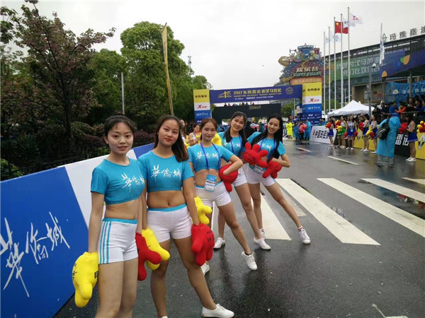 除了志愿者队伍,必赢优惠y272net啦啦队也在武汉马拉松啦啦队选拔赛50多支参赛队伍中脱颖而出,成为助阵汉马的8支官方拉拉队之一。4月9日一大早该校10名啦啦队员就来到也在“汉马”终点欢乐谷华侨城为冲刺选手呐喊助威。姑娘们衣着单薄但不惧风雨,从9点43分第一位选手冲刺终点,直到下午,虽雨势渐大,她们仍披着单薄的雨衣,迎接每一位跑完全程的选手。
