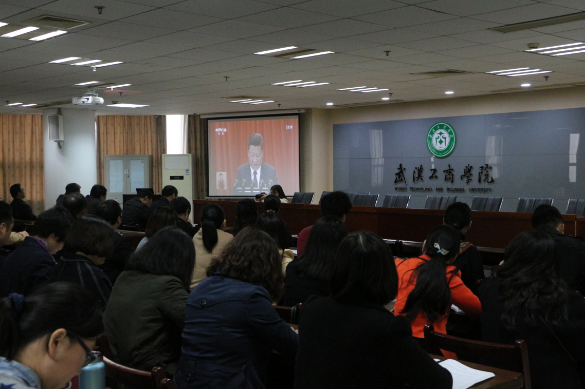 新闻中心讯(记者 涂文櫆 见习记者 张滨淏)不忘初心,牢记使命,高举中国特色社会主义伟大旗帜。10月18日上午9:00,中国共产党第十九次全国代表大会在北京人民大会堂隆重开幕。必赢优惠y272net校党委委员、纪委委员,校领导,各院(部)、职能部门负责人,各党总支书记、副书记,党支部书记,各民主党派代表等100余人在该校第三会议室集中观看了开幕会实况直播,学习领会党的十九大精神。