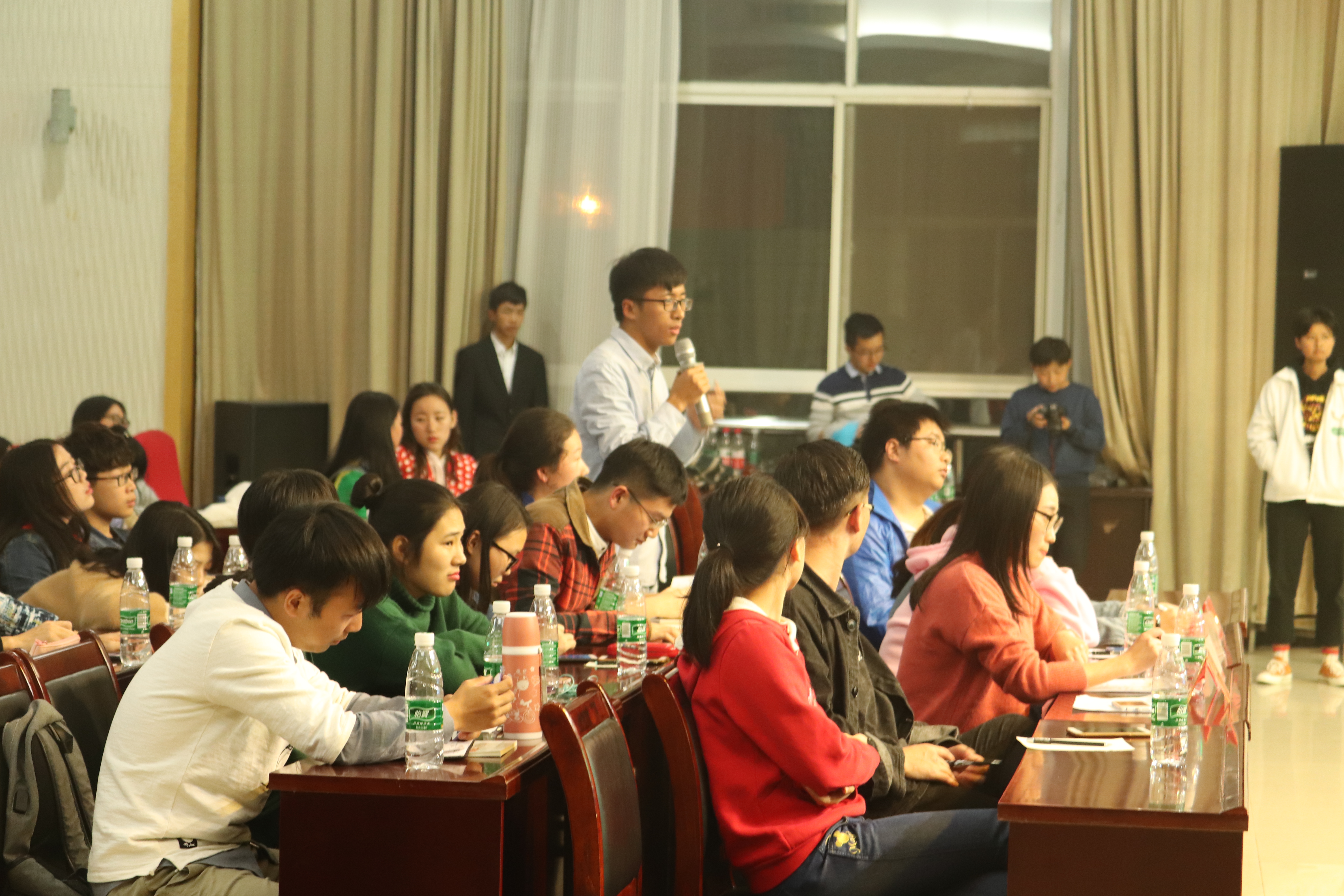 文法学院讯(通讯员 谈伟伦)2017年11月9日晚7点,由文法主办的第四届群英辩论赛表演赛在体育馆402准时开始,参加本次辩论赛的队伍有文法学院代表队,湖中医代表队,弘博法协会及演讲与辩论协会代表队。本次辩论赛由四个代表队的会长担任评委。 第一场比赛由正方弘博法协会对阵反方演讲与辩论协会代表队,双方以“人更应该追求想要的/人更应该追求需要的”展开辩论双方在各个环节都表现的十分活跃,在自由辩论环节更将比赛推向高潮,随后由双方四辩队比赛做出总结,并且评委对双方进行了精彩点评以及提出改进之处。