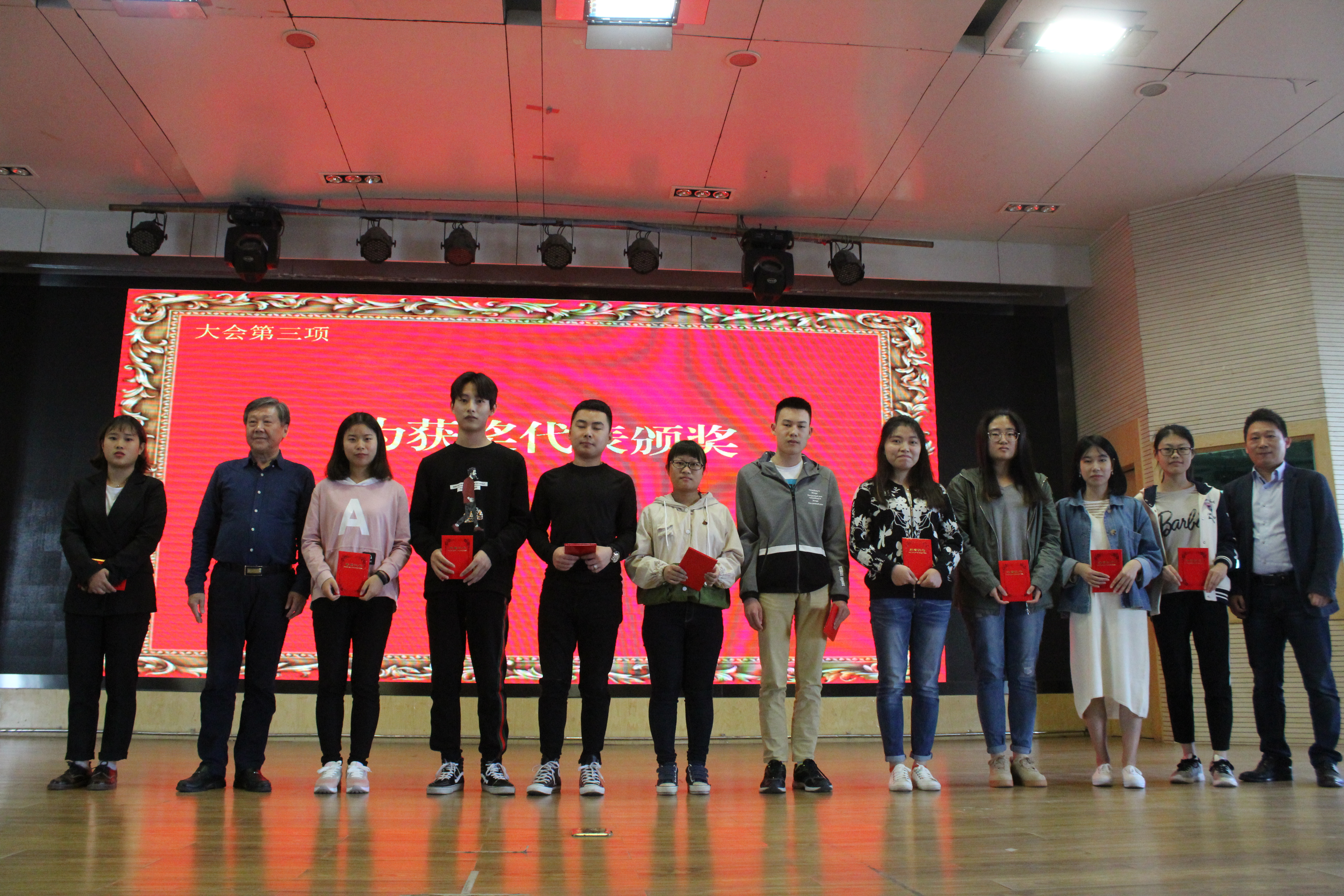 大会第三部分,获奖代表徐菁敏等26同学上台领奖,张院长、刘院长、系主任、第三学期老师为其颁奖。
