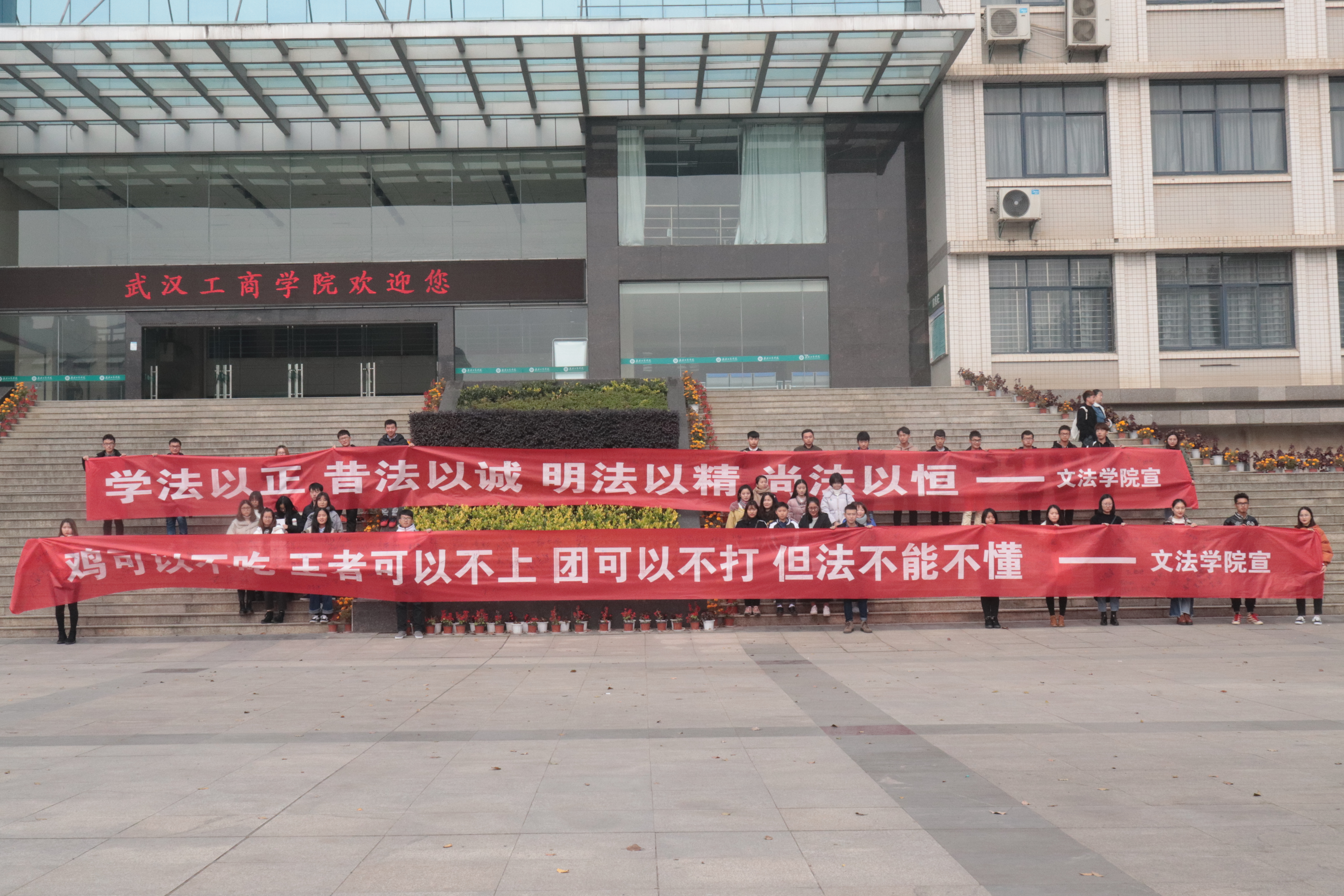 本次的活动口号是“学法以正,普法以诚,明法以精,尚法以恒”通过深入扎实的法制宣传教育,深入宣传宪法,广泛传播法律知识,提高大学生们的法律意识和法律素质,促进全社会自觉学法、守法、用法和谐校园氛围的形成。