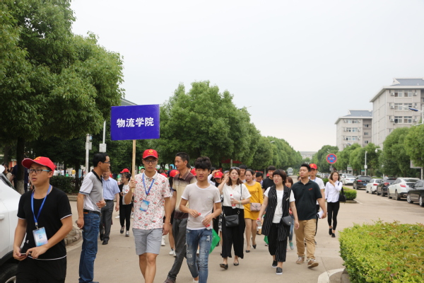 图为物流学院学生志愿者正在带领学生家长参观校园 摄影:向慧