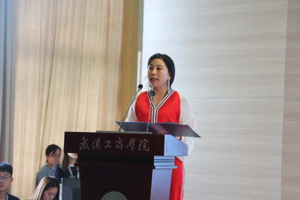 家校互动委员会主任、管理学院16级工商管理专业学生董子正的家长温若含发言。她表达了自己的三点看法,一是积极配合和协助学校的教育工作,注重孩子的家庭教育;二是建议学校定期召开家长委员会成员会议、建立义工制度,以及每学期评选优秀学生家长;三是努力提升自我能力,团结广大家长,与学校一起,共同关注和帮助孩子的成长。
