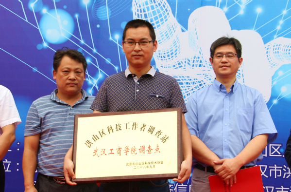 图为学校获得洪山区科技工作者调查站授牌 摄影:葛诗瑶