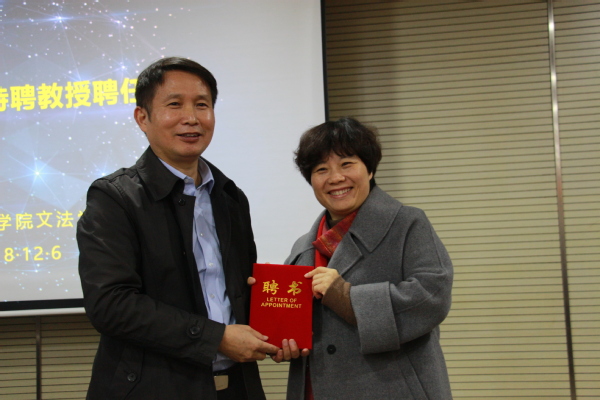 图为陈奎生校长颁发特聘教授聘书 摄影:谭艳
