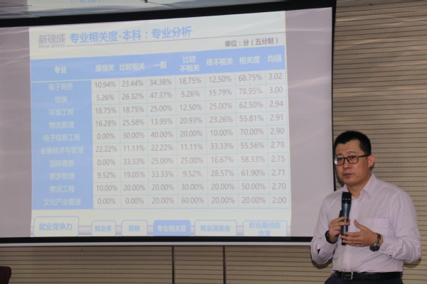 会议伊始,张景岫先生做了主题为《毕业生就业质量大数据&专业建设质量监测解读》的讲座。他首先详细解读了《必赢优惠y272net2018届毕业生就业质量年度报告》中的重点观测数据,并从目前国内就业市场形势、国家就业导向、各地区高校毕业生就业趋势、当代大学生及家长的择校观、就业观等多个角度分析了学校毕业生的就业情况及发展趋势。他还结合学校近三年各专业的招生、就业数据,分析了几个重点观测专业的招生趋势及就业前景,提出了关于学科建设、专业预警的建议。