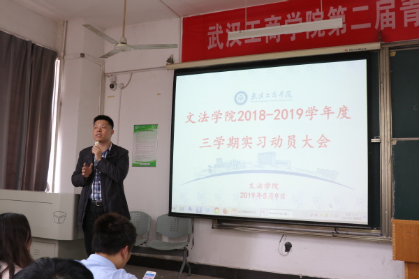 文法学院讯( 通讯员 郝昕杰)2019年5月9日13:00,我院2017级实习动员大会在204教室如期举行。出席本次动员大会的嘉宾有:文法学院常务副院长刘润峰教授,办公室主任吴琼老师,各专业的实习指导老师及17级的辅导员老师。