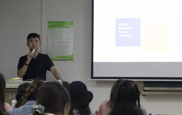 文法学院讯(通讯员 谷蔓丽)为了加强学生对于创新创业知识的了解,推动创新创业精神的发展,9月21日晚上6:30在综合楼601开展了创业与创业类比赛经验分享会。学院特别邀请了广告学子李义凡为19级新闻学生来分享关于如何创业以及创业类比赛的经验分享。