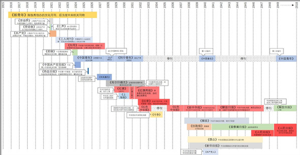 图3 1920-1949 主要的党报党刊的存在时间绘制的时间轴