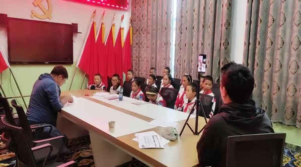 (西藏仁布县康雄乡中心小学师生正在参加线上交流会)
