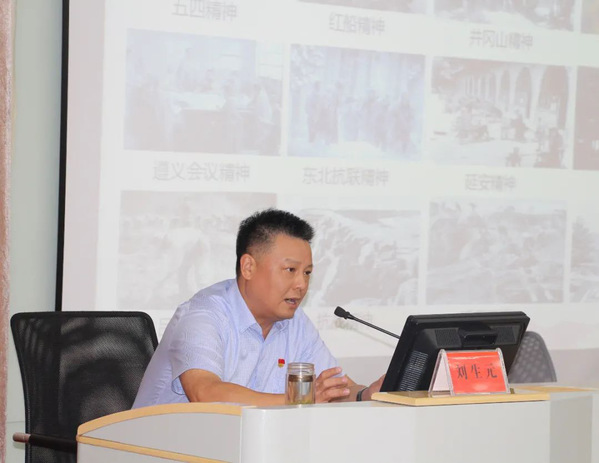 刘生元书记作了题为《学习百年党史传承红色基因》的讲座,全面梳理了百年来中国共产党不同时期形成的诸多精神,重点解读了中国共产党人的八种精神,深入诠释了精神的时代价值与现实意义。在解读红船精神、长征精神、延安精神、抗美援朝精神、雷锋精神、大庆精神、焦裕禄精神、抗疫精神等重要精神时,他深情讲述了每种精神背后感人至深的党史故事,生动再现了百年辉煌历程中中国共产党人的“精神谱系”,用一幅幅震撼心灵的历史画面让在座党员干部接受了一次精神上的洗礼和深刻的思想教育。最后,他结合国家发展和学校工作实际,诠释了这些精神的时代价值与现实意义。
