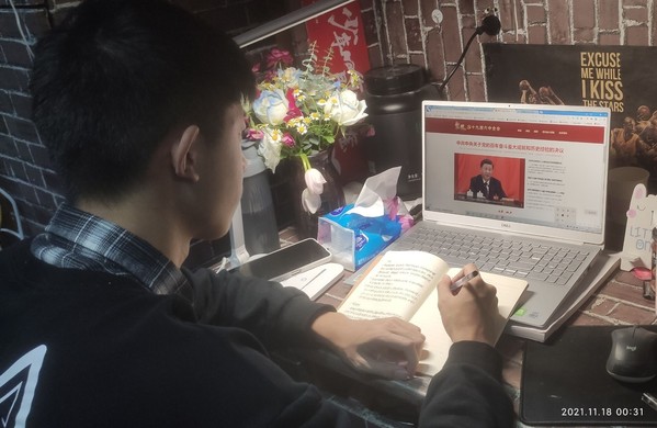 活动分为两部分,线上学习后,便召开线下研讨会。出席线下研讨会的人员有文法学院法学学生党支部书记肖隽、全体正式党员、预备党员以及入党积极分子,就学习十九届六中全会主要内容和精神后,分享自己的个人感悟。