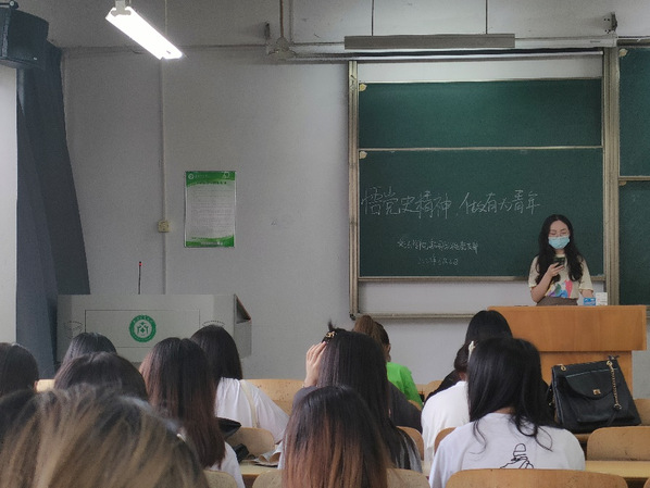 在我党100年波澜壮阔的历史进程中,形成了红船精神、长征精神、延安精神、雷锋精神、抗洪精神、抗震救灾精神、抗疫奉献精神等伟大的精神。这些精神是党员党性长期不断淬炼的宝贵精神财富,是推动我们党从胜利走向胜利的强大精神动力。大会中预备党员王晶晶、刘芝圻分别发言阐述她们眼中的党史精神。作为新时代的青年,我们一定学好“四史”,做到学史崇德,毫不畏惧战胜一切苦难和挑战,赓续奋斗精神,为实现中国梦贡献力量。