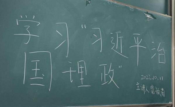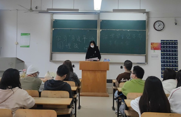 法学学生党支部(记者:朱明慧)2022年10月11日中午12点10分文法学院法学学生党支部在综合楼201开展了以“学习习近平治国理政”为主题的党支部大会。本次党课由法学学生党支部宣传委员雷颖茵主持,文法学院法学学生党支部党员、预备党员参加本次会议。