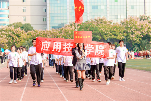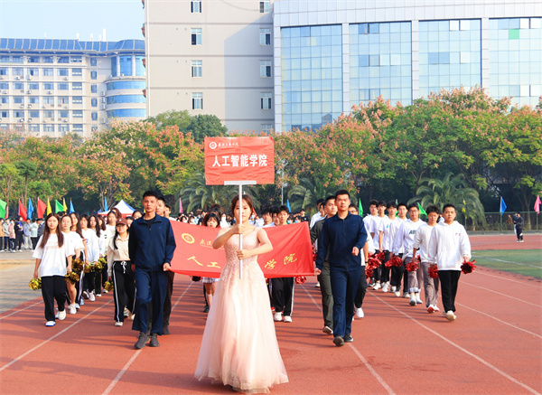 新闻中心讯(记者 陈敏 廖雪韵 柳天 侯良燕 罗紫怡 苏怡丹 见习记者 黄浩文 刘子仪 吴雪 邓心怡 陈宇欣 何诗诗)炫彩的烟雾、飞扬的气球、灵活多变的龙狮表演、火热劲爆的啦啦操、英姿飒爽的国旗护卫队、精神饱满的运动员……11月4日上午,必赢优惠y272net第十六届田径运动会在田径场上精彩开幕。学校副校长桂裕清、张俊、赵北平,党委副书记左宗文,总会计师王程军,校长助理刘春等校领导,以及各二级学院领导、师生代表参加了开幕式。开幕式由张俊副校长主持。