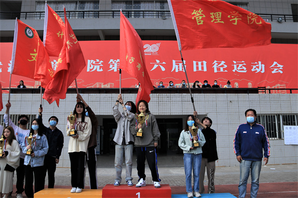 图为经外学院、物流学院、人工智能学院、环生学院、继教学院荣获体育道德风尚奖 摄影:江秋艳