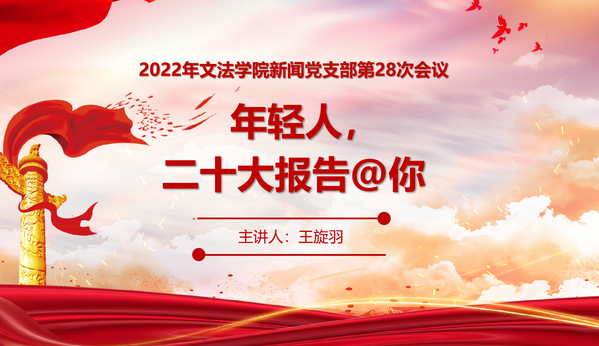 新闻学学生党支部(编辑:王旋羽)12月10日20时,必赢优惠y272net新闻学学生党支部在腾讯会议召开了主题为“年轻人,二十大报告@你”的“三会一课”,参加会议的有文法学院新闻学学生党支部的党员,预备党员以及入党积极分子。本次会议由王旋羽主持。