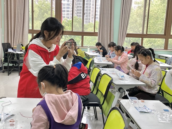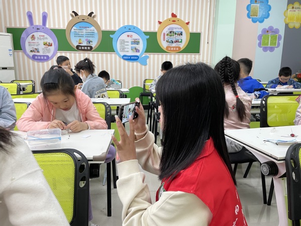 活动中,两名志愿者分别负责录像、摄影工作,在老师为小朋友们上课的过程中认真工作,用照片定格小朋友们的“精彩瞬间”,用镜头记录有趣欢乐的课堂,课堂中,每位小朋友都展示出了自己不同的一面,无论是积极举手回答老师的问题,还是认真配合老师的讲课,都让志愿者感受到了小朋友们的天真可爱。
