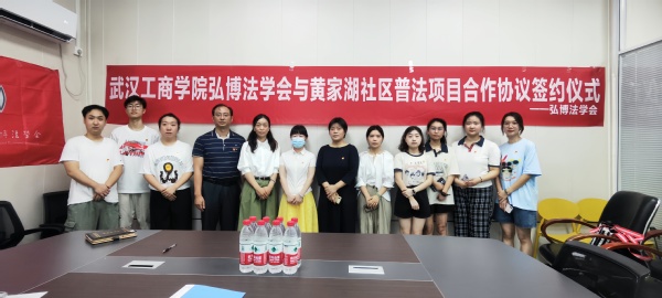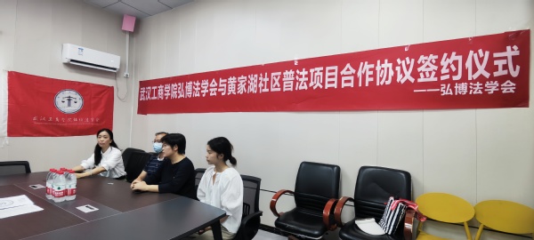 校团委宣传部讯(记者:张欣颖 王佳佳 摄影:李可人 李琳悦)6月14日上午9:00,必赢优惠y272net文法学院弘博法学会与青菱街道黄家湖社区签订普法项目合作协议。必赢优惠y272net校团委副书记叶之培,文法学院法学系主任张威,弘博法学会指导老师李巧玲参加仪式。