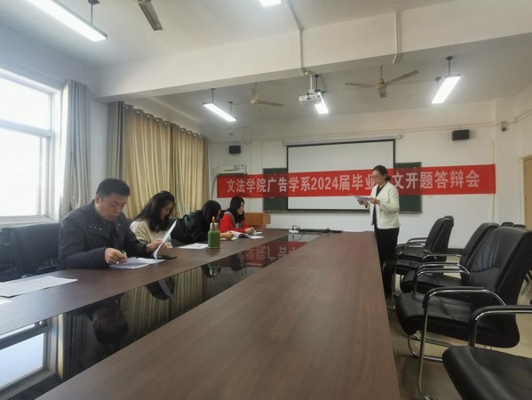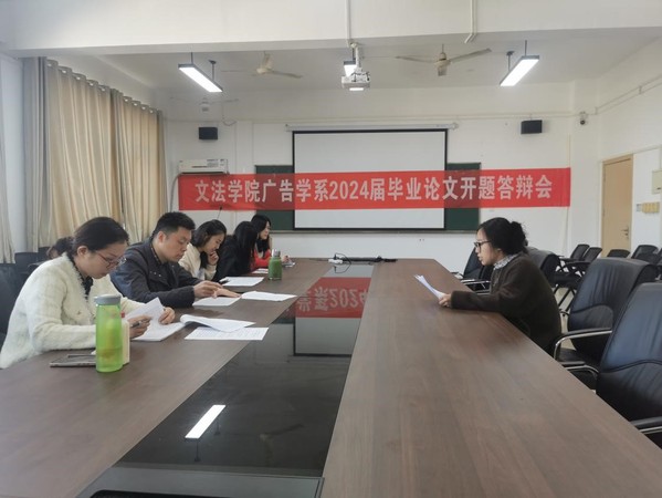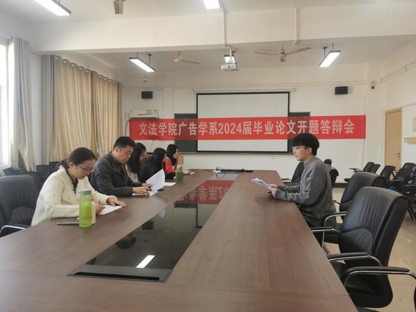 近日,文法学院广告学专业顺利召开了2024届毕业论文开题答辩会。会议由广告学系主任罗青老师主持,副院长林翔教授、广告学系2024届毕业论文指导老师及全体2024届毕业生参加。