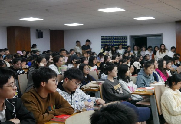 讲座一始,教室内已座无虚席,同学们热情洋溢。法学系教师侯东凯老师向同学们介绍了厚大法硕及参会嘉宾,文法学院副院长华丽娜副教授为同学们做讲座介绍,赞誉丁辉老师为“二本之光”,并表达了自己对法学专业同学们考研的深厚期望。