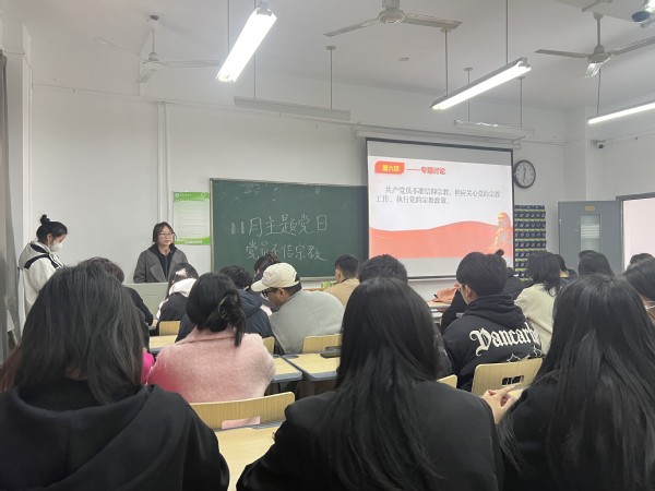 文法学院法学学生党支部(记者:彭欣瑶)2023年11月28日中午12点15分文法学院法学学生党支部在外语楼317开展了以“坚定理想信念 党员不能信仰宗教”为主题的主题党日活动。会议围绕党员应当不信仰宗教、党员如何对待宗教问题、党员是否可以游览宗教场所展开。本次会议由新闻学学生党支部组织委员付雨晨主持,由文法学院各学生党支部全体党员、预备党员参会。