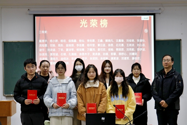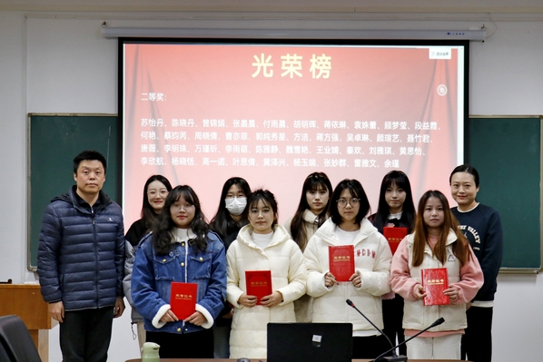系主任张威老师和陈媛媛老师为三等奖学生代表颁奖