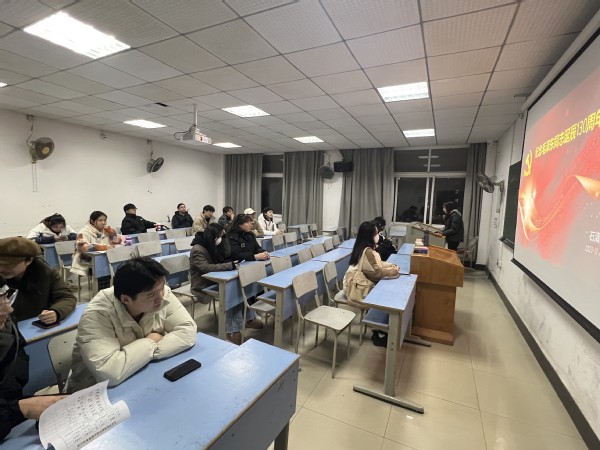 主讲人石清清讲到,对毛泽东同志的最好纪念,就是把他开创的事业继续推向前进。1935年,在娄山关战役胜利之后,毛泽东同志提笔写下:“雄关漫道真如铁,而今迈步从头越。从头越,苍山如海,残阳如血。”在现如今新的历史阶段下,毛泽东等老一辈革命家开创的伟大事业正欣欣向荣,他们追求的伟大理想正在变成现实,中华民族伟大复兴展现出前所未有的光明前景。但新的挑战也正在悄然来临,我们作为党员、预备党员更要加紧密地团结起来,只争朝夕、顽强奋斗,沿着中国特色社会主义道路,为以中国式现代化全面推进强国建设、民族复兴伟业而奋勇前进!