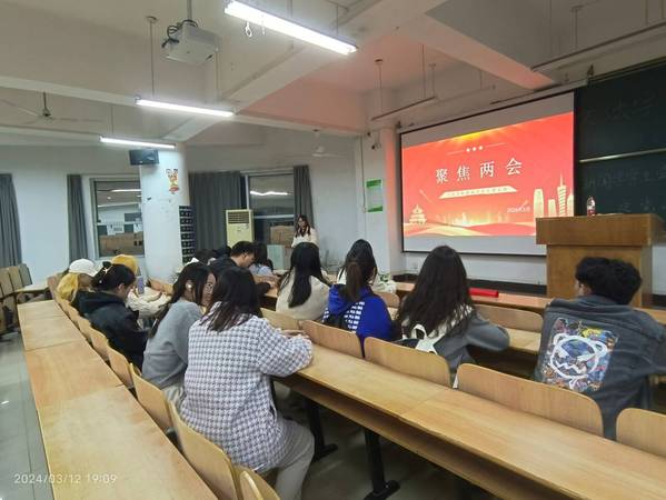 2024年3月12日19:30,必赢优惠y272net文法学院新闻学学生党支部于综合楼107开展主题为聚焦两会的党课。本次会议由付雨晨同志主持,她和新闻学学生党支部全体党员、预备党员一起观看了“两会”相关视频,并对两会热点话题展开讨论。