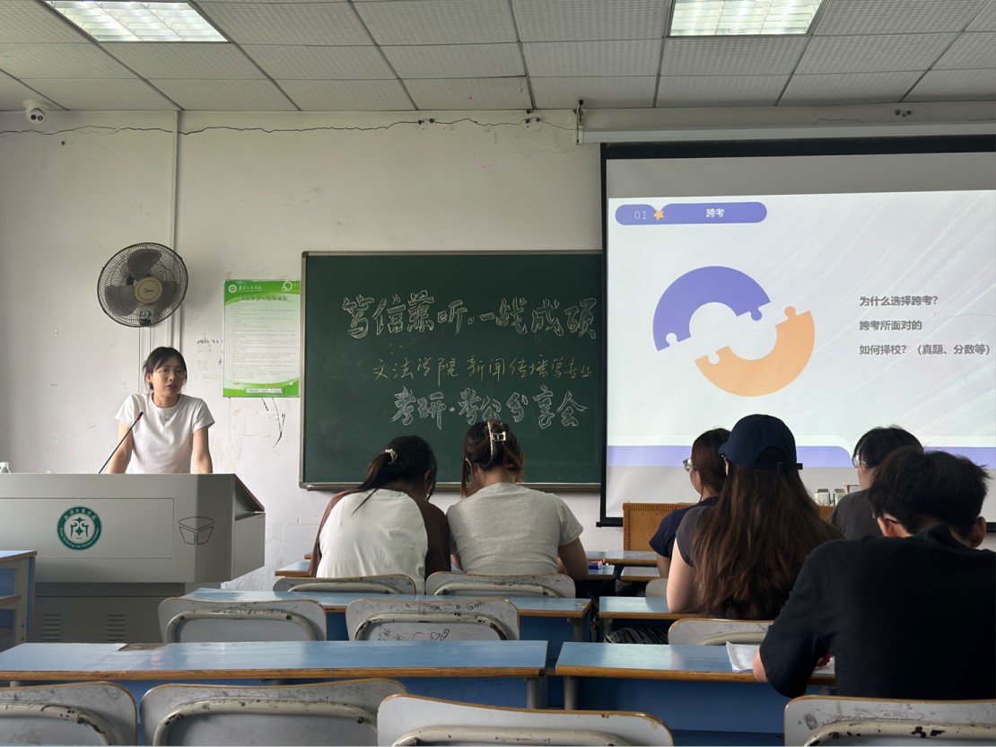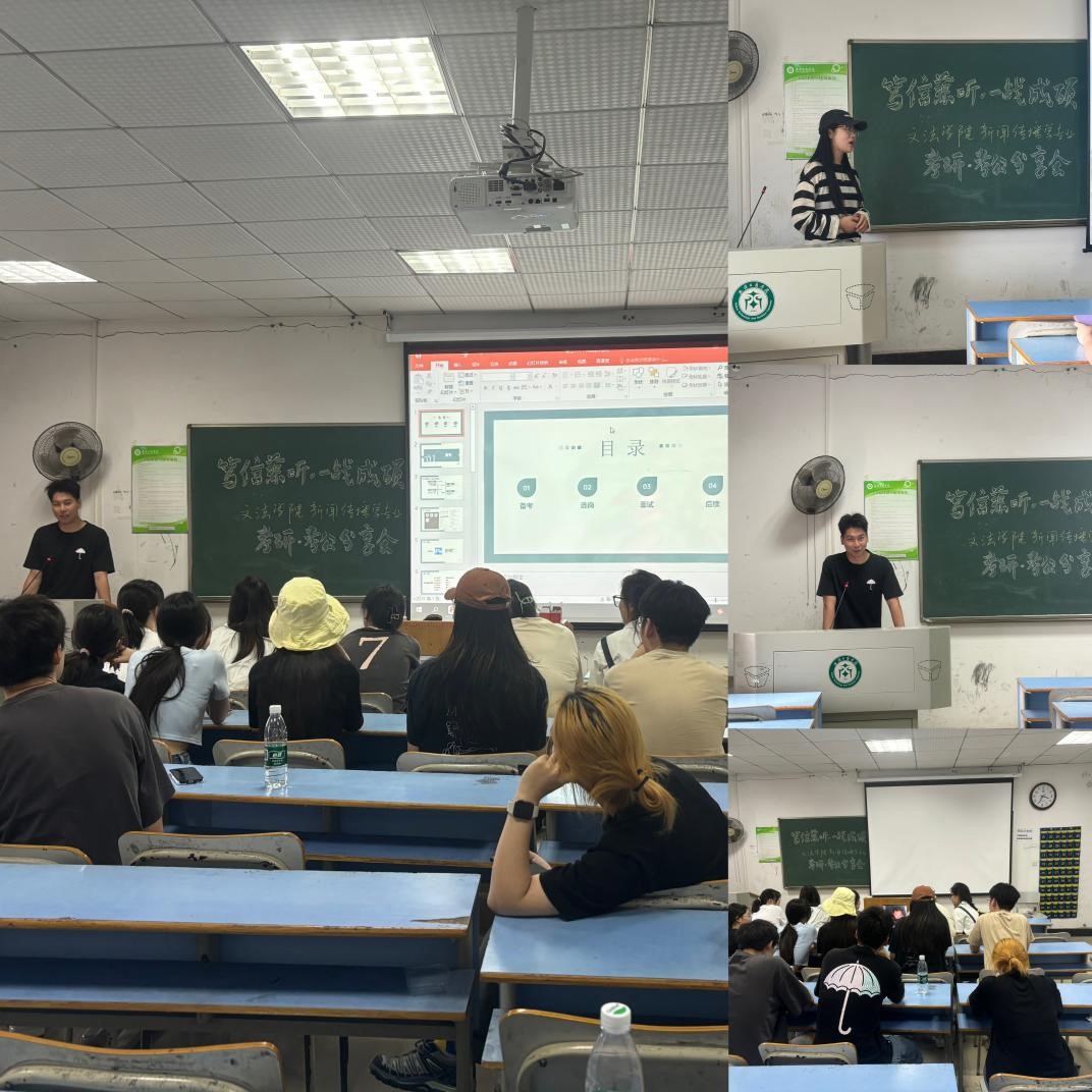 “坚定信心,相信自己的能力和潜力,你们可以的!”6月13日,文法学院603教室成功举办了以“笃信兼听·一战成硕”为主题的考研考公经验分享交流会。此次活动分为两个专场,分别邀请2020级新闻传播专业的考研上岸学子和成功考公考编学子,为目前正准备考试的同学们提供宝贵的经验与建议。文法学院新闻学、广告学、网络与新媒体专业22、21级学生及部分专职教师参与会议。
