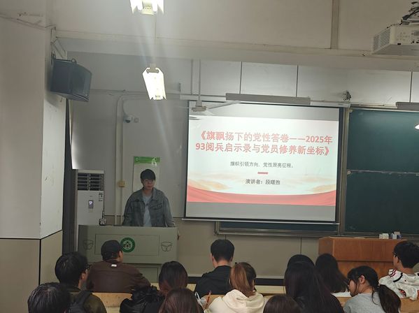 最后由主持人陈怡娜总结会议内容,九三阅兵照亮党员修养新坐标,散发党性光辉与使命担当。新征程上,党员要以阅兵精神为指引,加强党性修养、不忘初心,为党和人民事业奋斗,紧密团结在以习近平同志为核心的党中央周围,高举中国特色社会主义伟大旗帜,砥砺前行,书写壮丽党性答卷,为中国梦贡献力量!